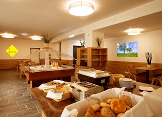 Jedes der rund 60 Zimmer ist mit einem Doppelbett, WC und Dusche ausgestattet. Im großen Speisesaal wird täglich ein ausgewogenes und vielreiches Frühstück in Buffetform angeboten.