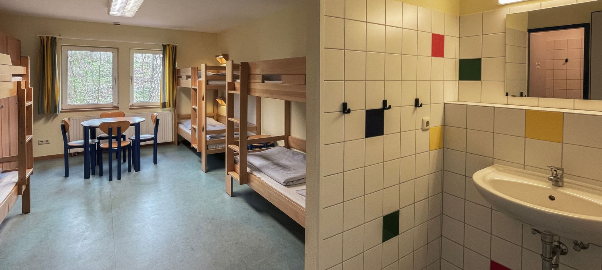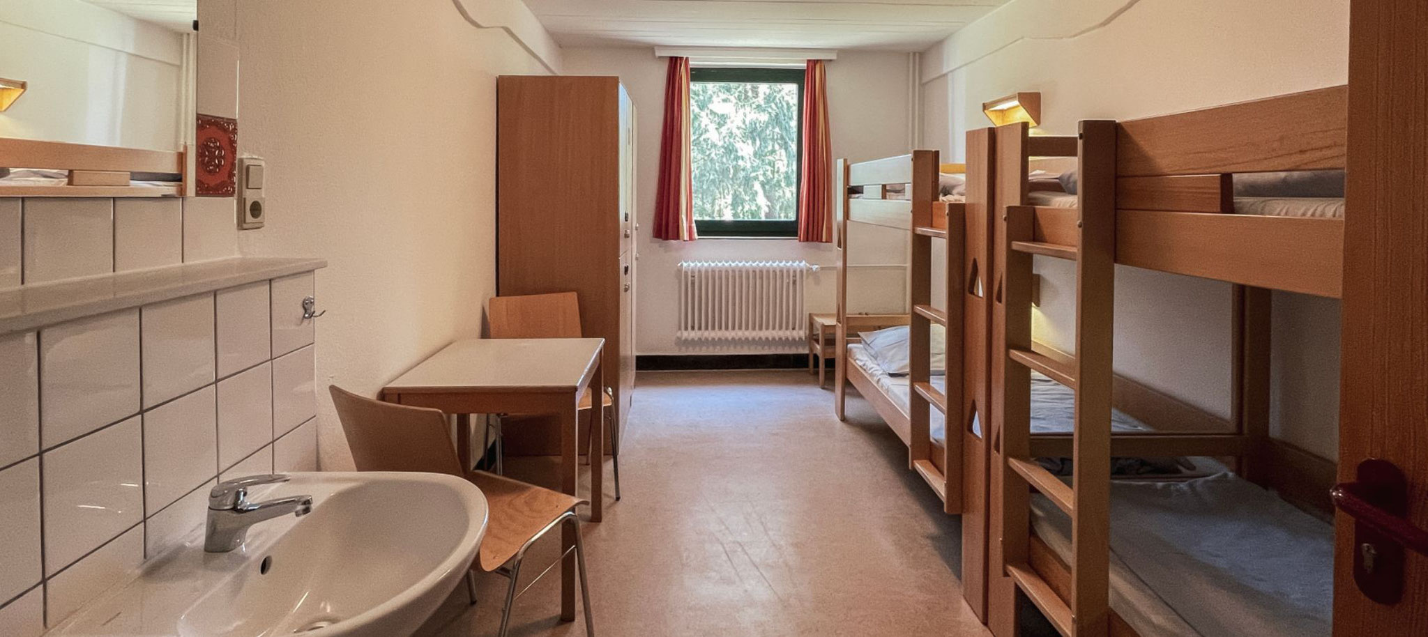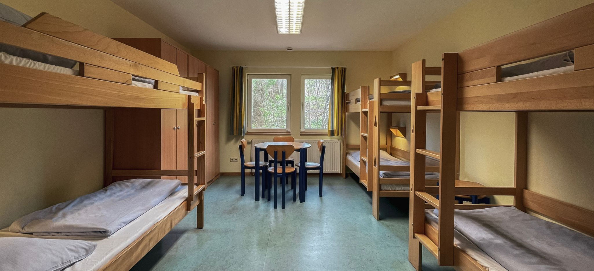 In zwei Häuser finden 121 Personen Platz. Die Zimmer reichen von Einzel- über Doppelzimmer bis hin zu Sechs-Bett-Zimmern.