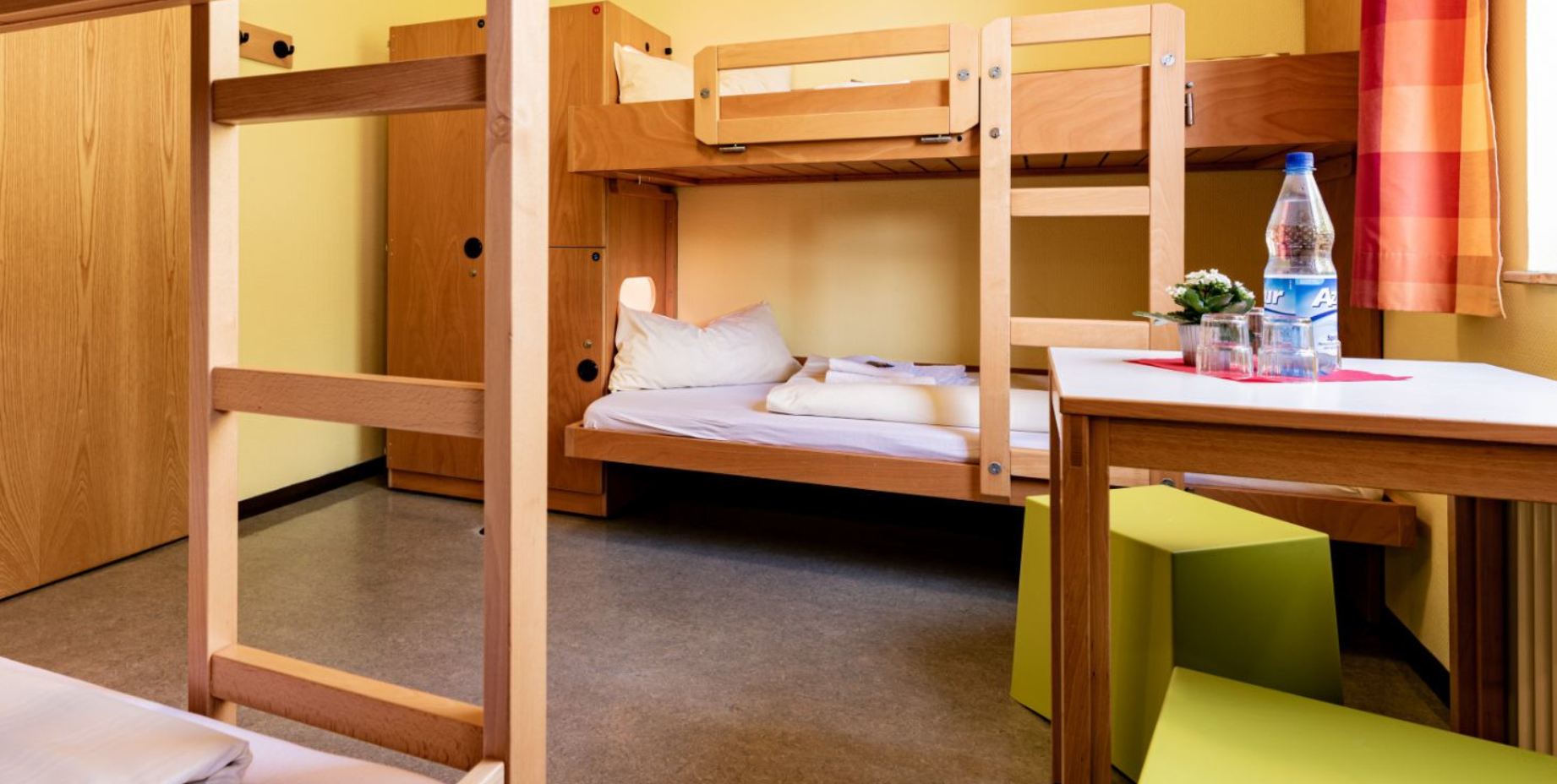 Die gern besuchte Jugendherberge mit 163 Betten liegt direkt angrenzend dem Sportpark. Sie umfasst Einzel- bis Mehrbettzimmer. Jedes Zimmer ist ausgestattet mit Stockbetten. Je nach Zimmerkategorie befinden sich Dusche und WC auf dem Zimmer oder zentral auf dem Gang.