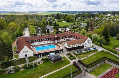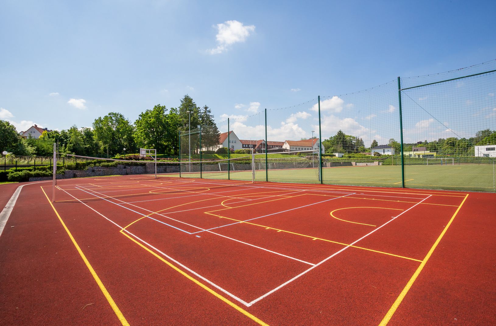 Neben der Sporthalle mit 30m x 50m gibt es auch eine Rundlaufbahn, einen Basketballplatz sowie einen Gymnastikhalle mit 200m².